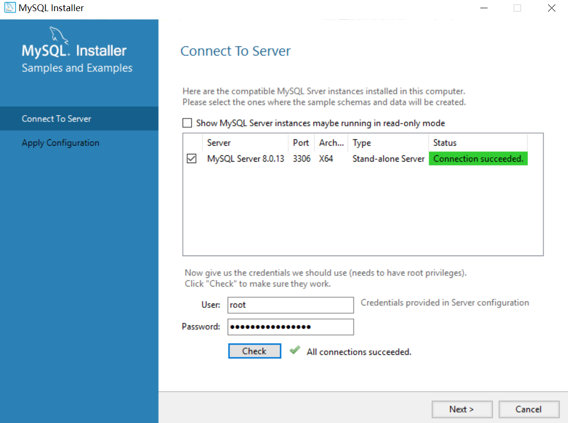 先从安装开始,云盘中提供了mysql-installer-community-8.0.13.0.msi, 打开后同样是一路next和execute就行。中途如果提示你没有安装VS和Python3.7无法进行连接的话其实不用管它(我明明安装了python3.7啊可它就是没检测出来),不过我还是在云盘中提供了python3.7的安装包。