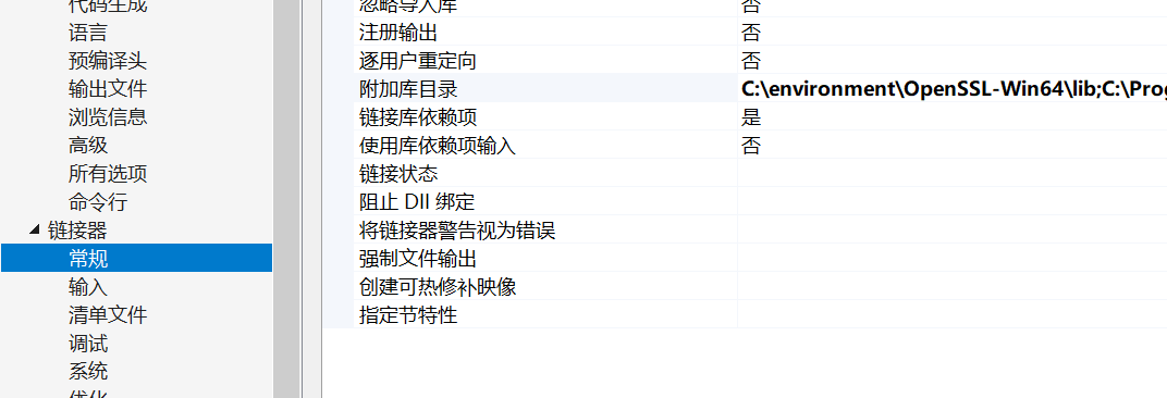 云盘中已经上传OpenSSL的安装包。解压后把include目录和lib目录像装MySQL的时候一样加进项目属性里即可,链接器->输入 里需要加入libssl.lib;libcrypto.lib;