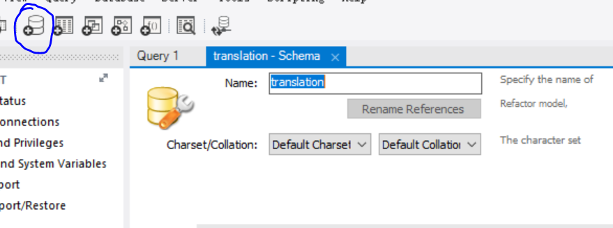 这里是输入数据库的服务名,最好写个能记住的名字,我一开始还以为是数据库名就写了个translation......