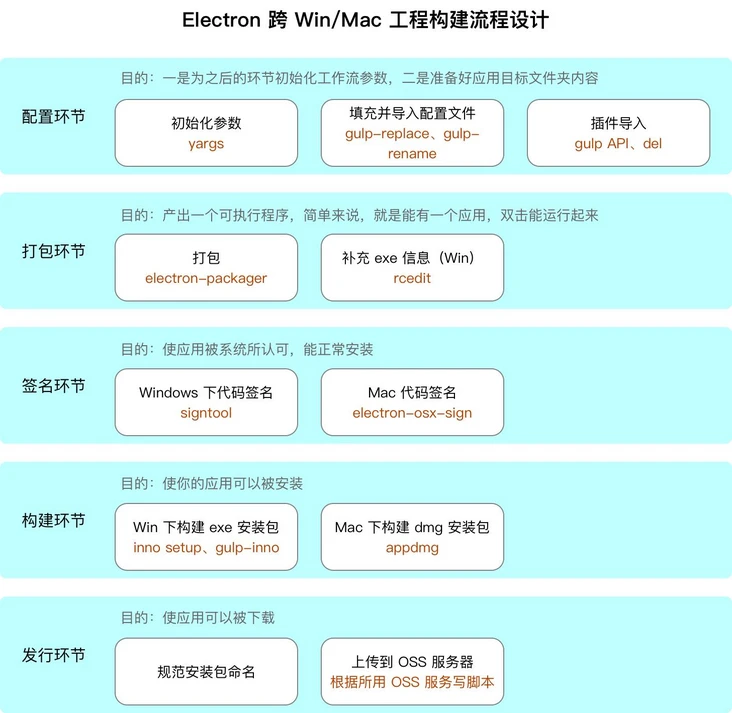 - 构建安装包环节:根据不同的系统利用不同的技术和依赖构建安装包,Windows 下的