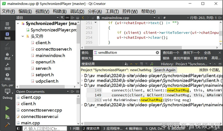 本文介绍了基于QT框架开发的异地情侣影院项目的关键技术实现。项目采用客户端-服务器架构,支持音视频同步播放、文字聊天等功能。重点阐述了三种核心信令协议:1)播放链接推送(src)支持网络流和本地文件两种模式;2)播放控制推送(snc)包含播放/暂停/跳转/同步/停止等命令,其中同步机制通过服务端每秒发送播放进度实现;3)文字聊天(msg)实现简单即时通讯。项目在QT6.5.3/6.6.3环境下运行