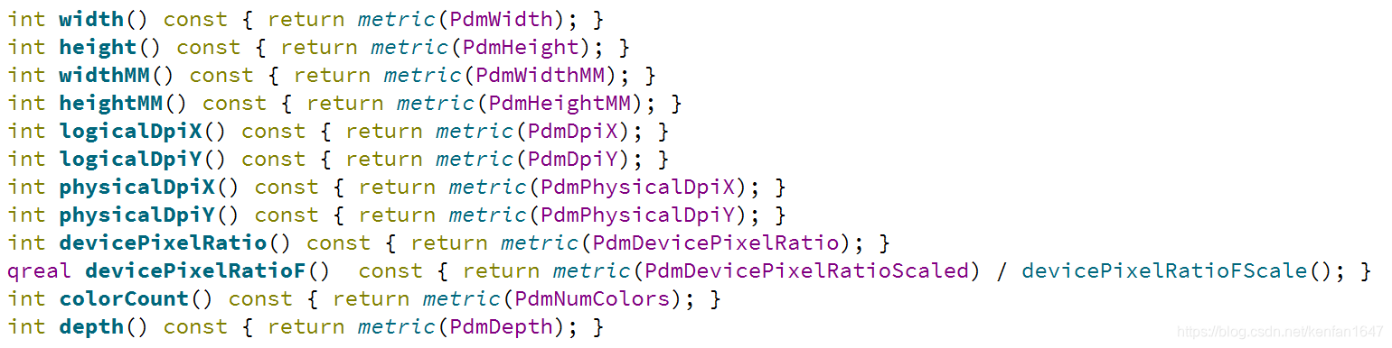 4、QPaintDevice类提供了几个返回各种设备度量的函数:
