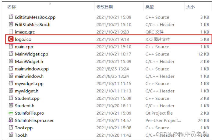 图 4 中,image.qrc 文件是用来为项目添加图标的,本项目选用的是 C 语言中文网的 icon 图标,就存储在当前项目的文件夹内,如下图所示: