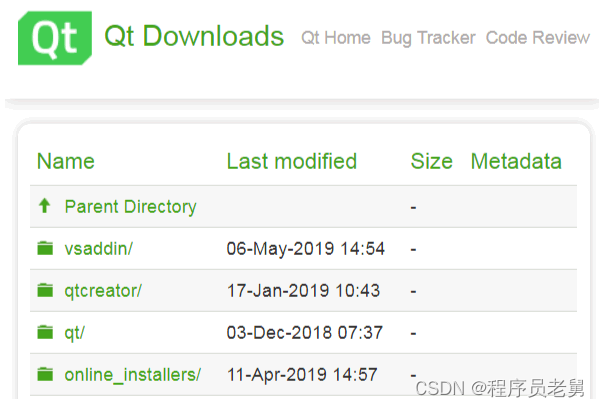 Qt 官网有一个专门的资源下载网站,所有的开发环境和相关工具都可以从这里下载,具体地址是:http://download.qt.io/