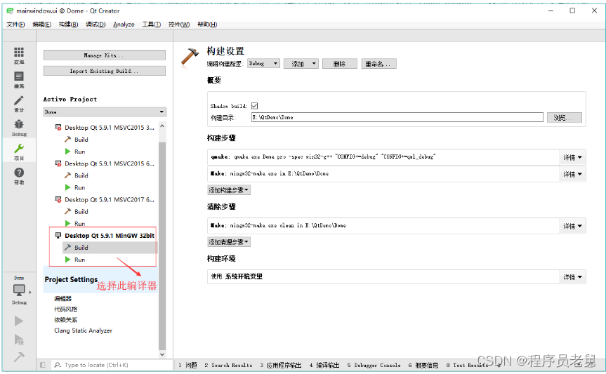 Qt Creator 默认以 debug 模式生成可执行文件,如下图所示,可以手动修改 Qt Creator 以 release 模式生成可执行文件: