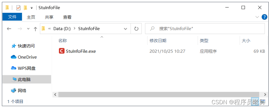 找到可执行文件之后,将其拷贝到一个空的文件夹,比如笔者将其拷贝到了新建的 D:\StuInfoFile 文件夹中,如下图所示: