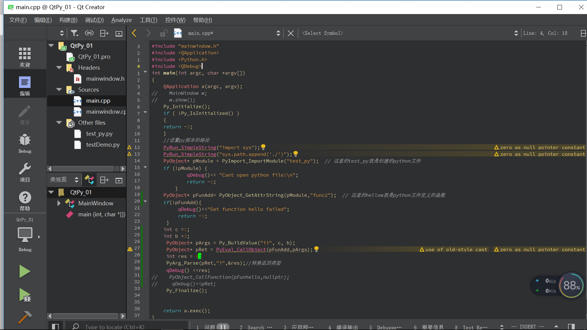 1.从Qt中调用py脚本里的一个无参函数,功能:打印"hello python"