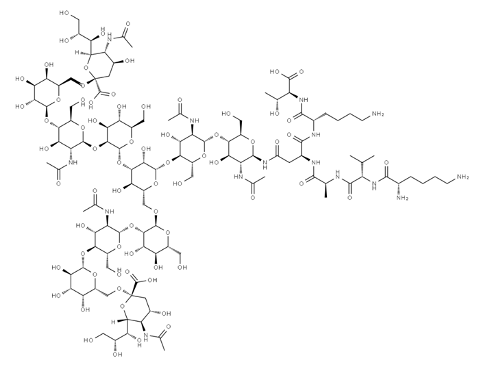 唾液酸糖肽的精妙之处在于其融合了肽链与复杂糖链的结构,尤其是末端唾液酸残基的存在: