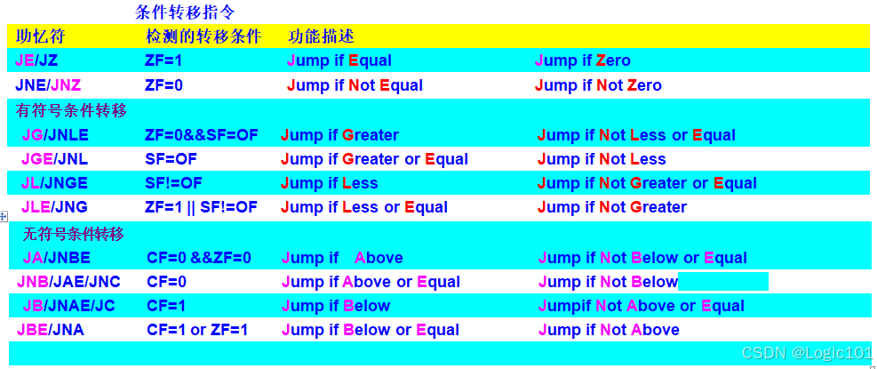 1. 指令JE与JZ等价,它们是根据标志位ZF进行转移的指令