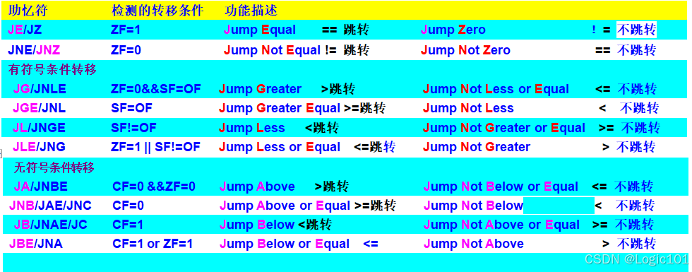 018-JL,JNGE JLE,JNG JG,JNLE JGE,JNL带符号条件转移指令小结