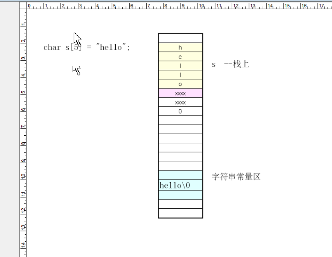 补充知识点,字符数组的数据存入是系统将字符串保存到字符串常量区后自动添加标识符'\0'再把它存到栈上,