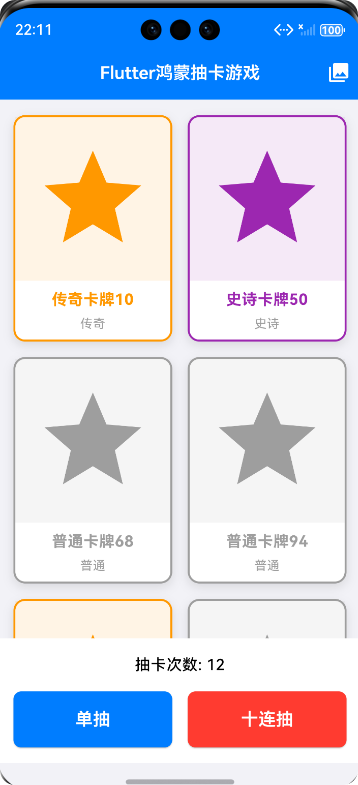本抽卡游戏采用了清晰的架构设计和模块化开发方式,确保了代码的可维护性和扩展性。通过Flutter框架实现了跨平台支持,并融合了鸿蒙OS的设计风格。核心功能包括卡牌系统、抽卡机制和收藏系统,提供了流畅的游戏体验。