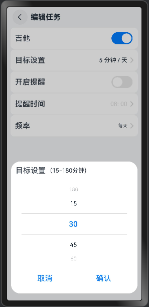 - 移除 TimePicker,统一使用 TextPicker 管理所有乐器的练习时长(15-180 分钟);