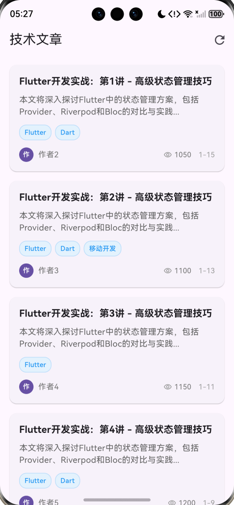 自主设计并实现一个通用的Flutter分页列表模块。不再绑定特定API,创建一个可复用的文章列表展示页,核心目标包括: