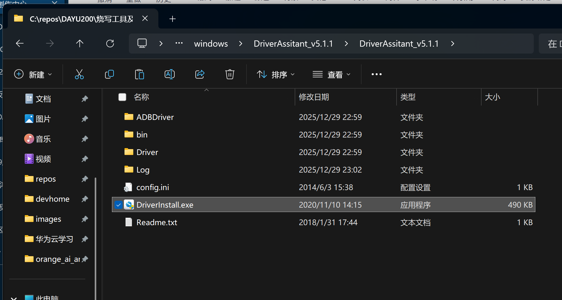 解压 DriverAssitant_v5.1.1.zip ,找到 DriverInstall.exe