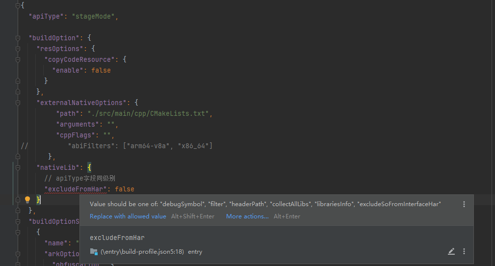 但是我在向在模块级build-profile.json5代码中增加配置时,报出以下错误: