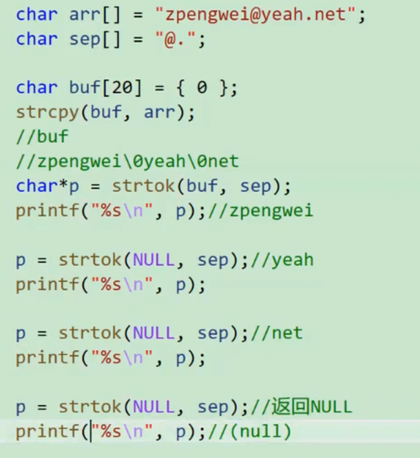 修改原始字符串 后续调⽤:传⼊ NULL
