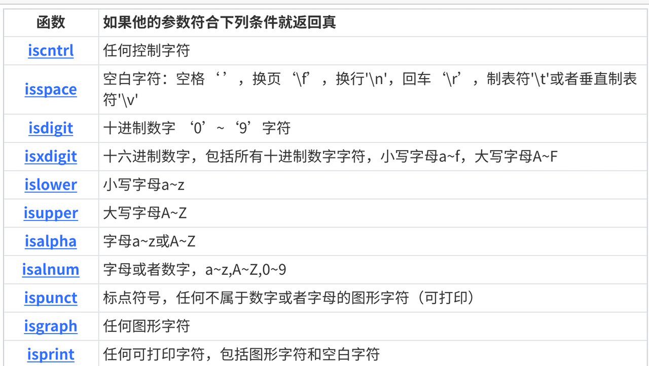 字符分类函数 头⽂件 ctype.h