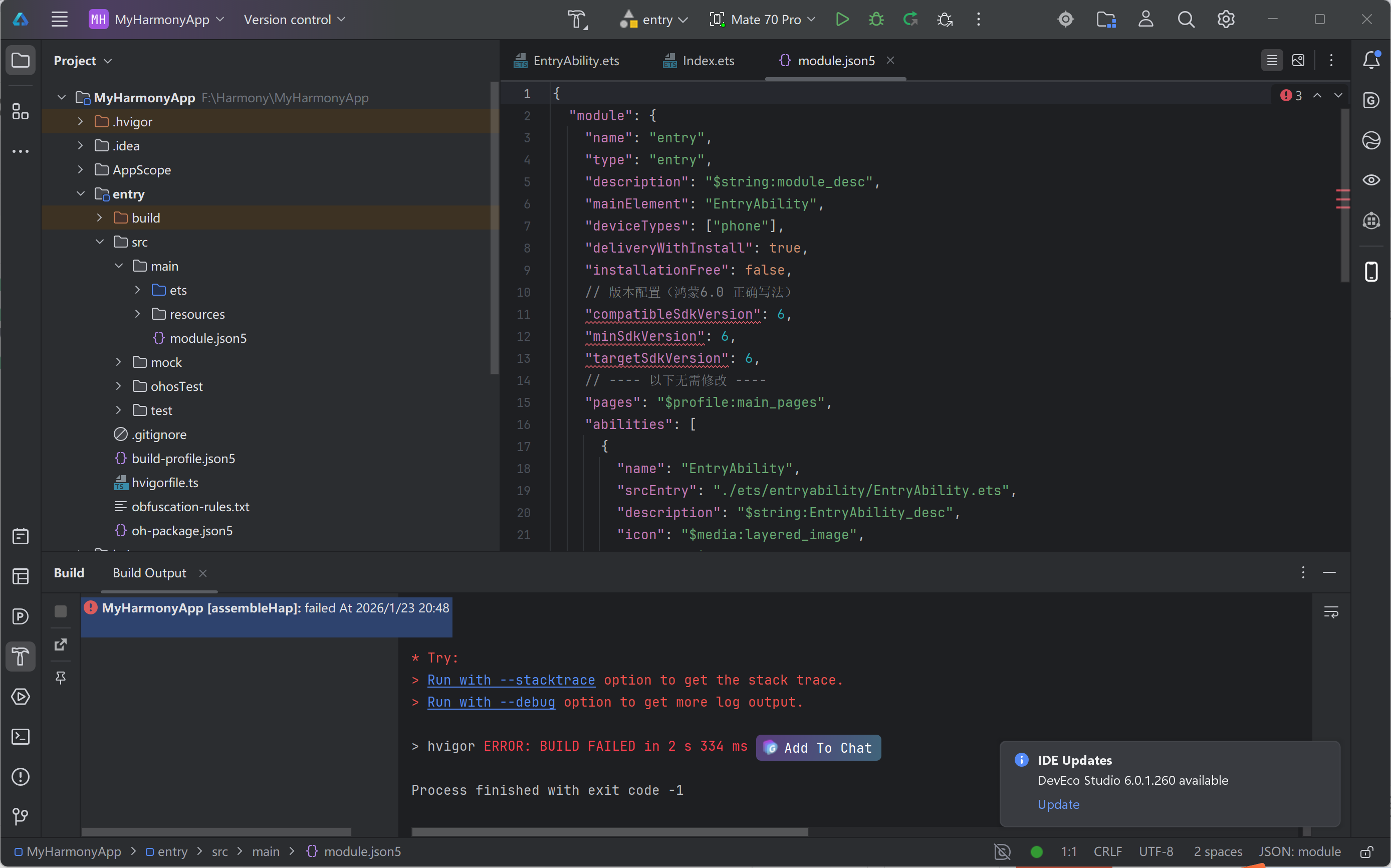 我第一次运行之后显示如图一,是溢出问题,后面我又重新创建了一个项目出现报错情况如图二,显示的是版本不匹配问题,这里建议大家安装版本都定为最新版本避免出现类似问题。最终运行结果如图三所示,即验证成功。