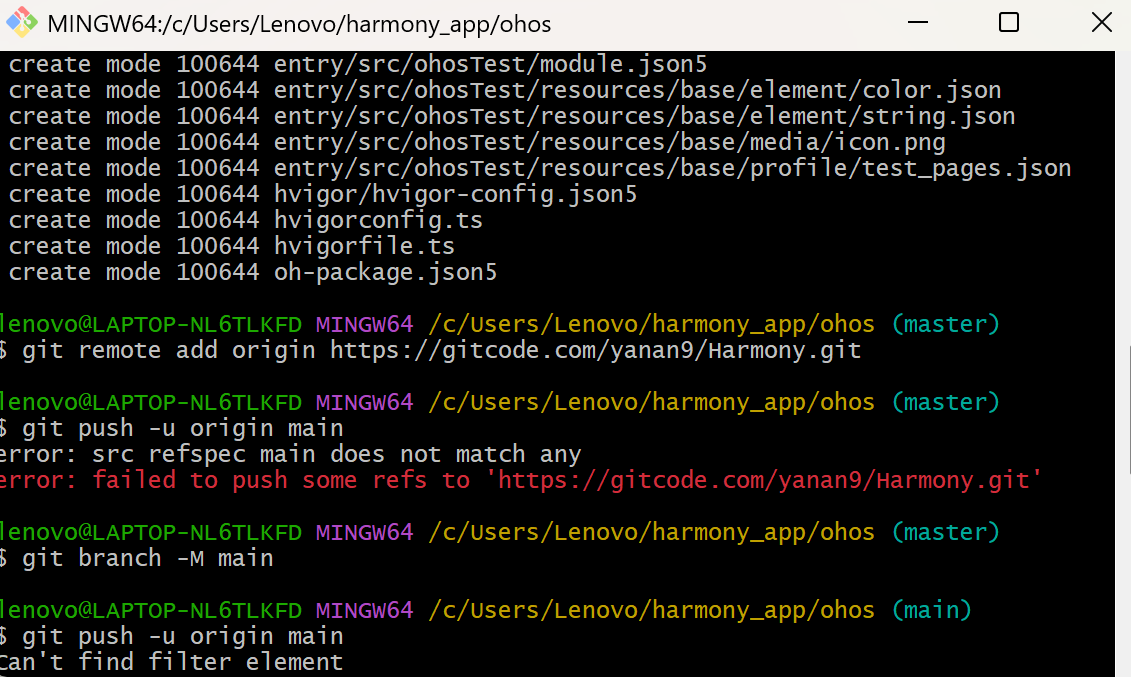❗在说明具体问题前声明:Git打开可以直接从页面上面打开,需要右键选择Open Git Bash here打开。第一次我的配置这里出错误,显示分支命名不匹配,操作简单,只需要输入两行命令改变即可: