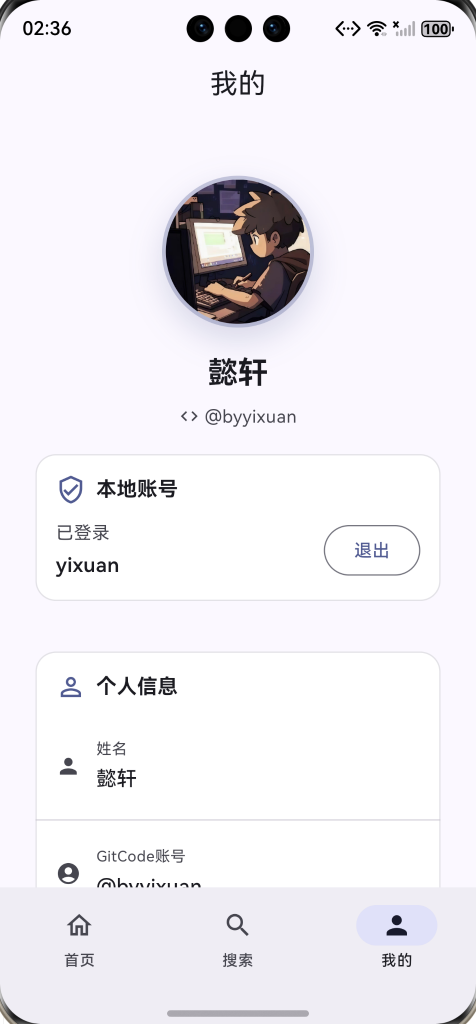 🔐 版本亮点:新增本地账号注册/登录/退出 + 启动鉴权(未登录先登录)+ OpenHarmony 端可持久化(解决