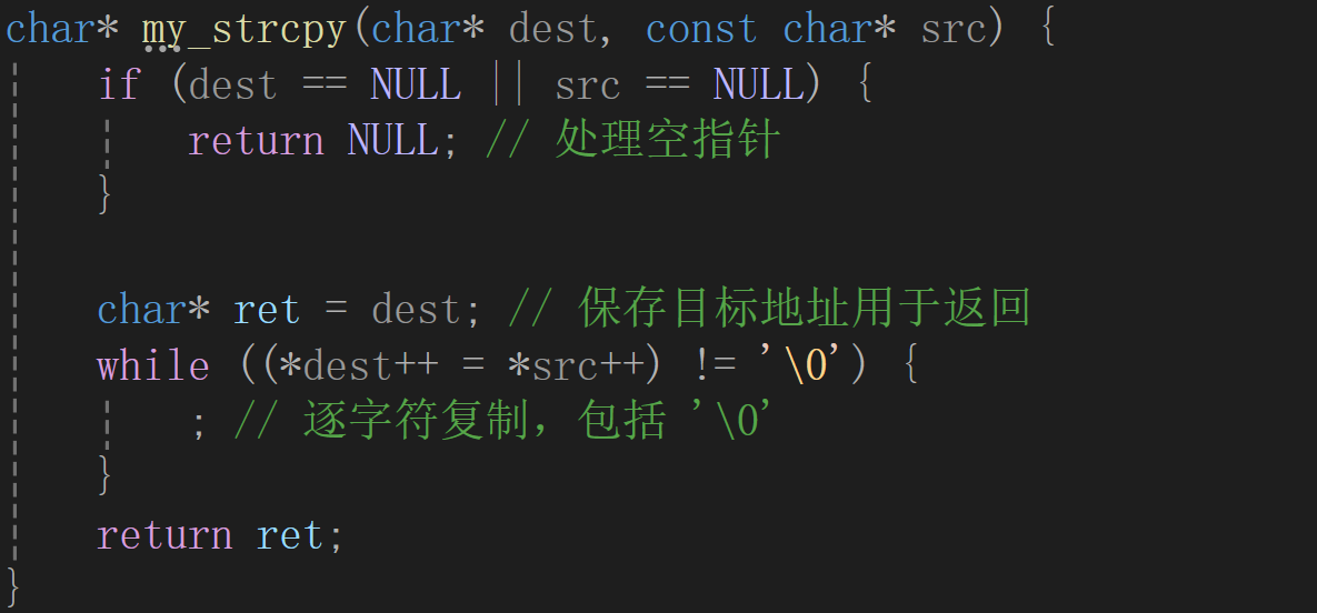 dest:目标字符串的指针,需确保有足够的空间容纳源字符串(包括终止符\0)。src:源字符串的指针,必须以\0结尾。