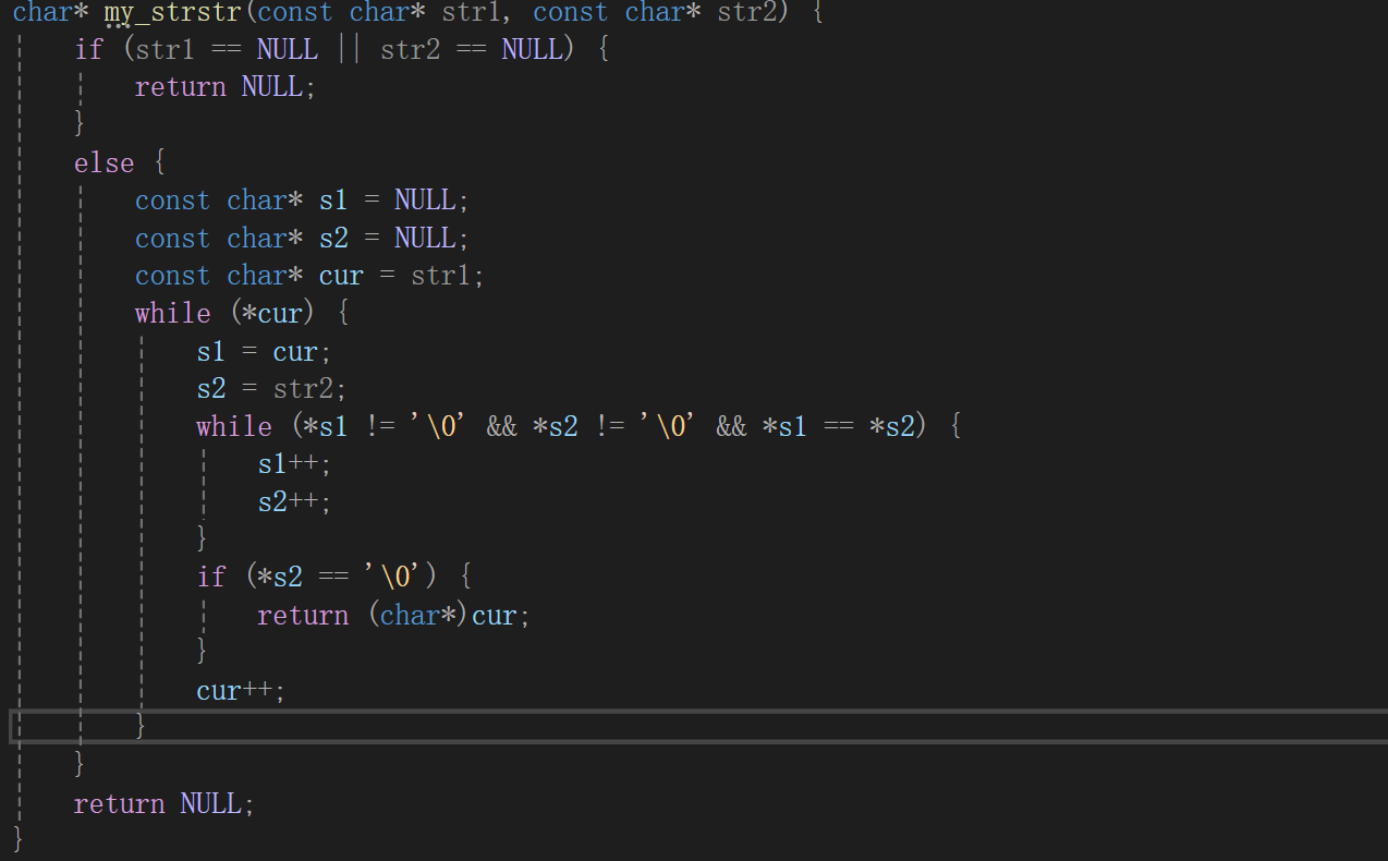 - 如果找到子字符串,返回指向首次出现位置的指针。