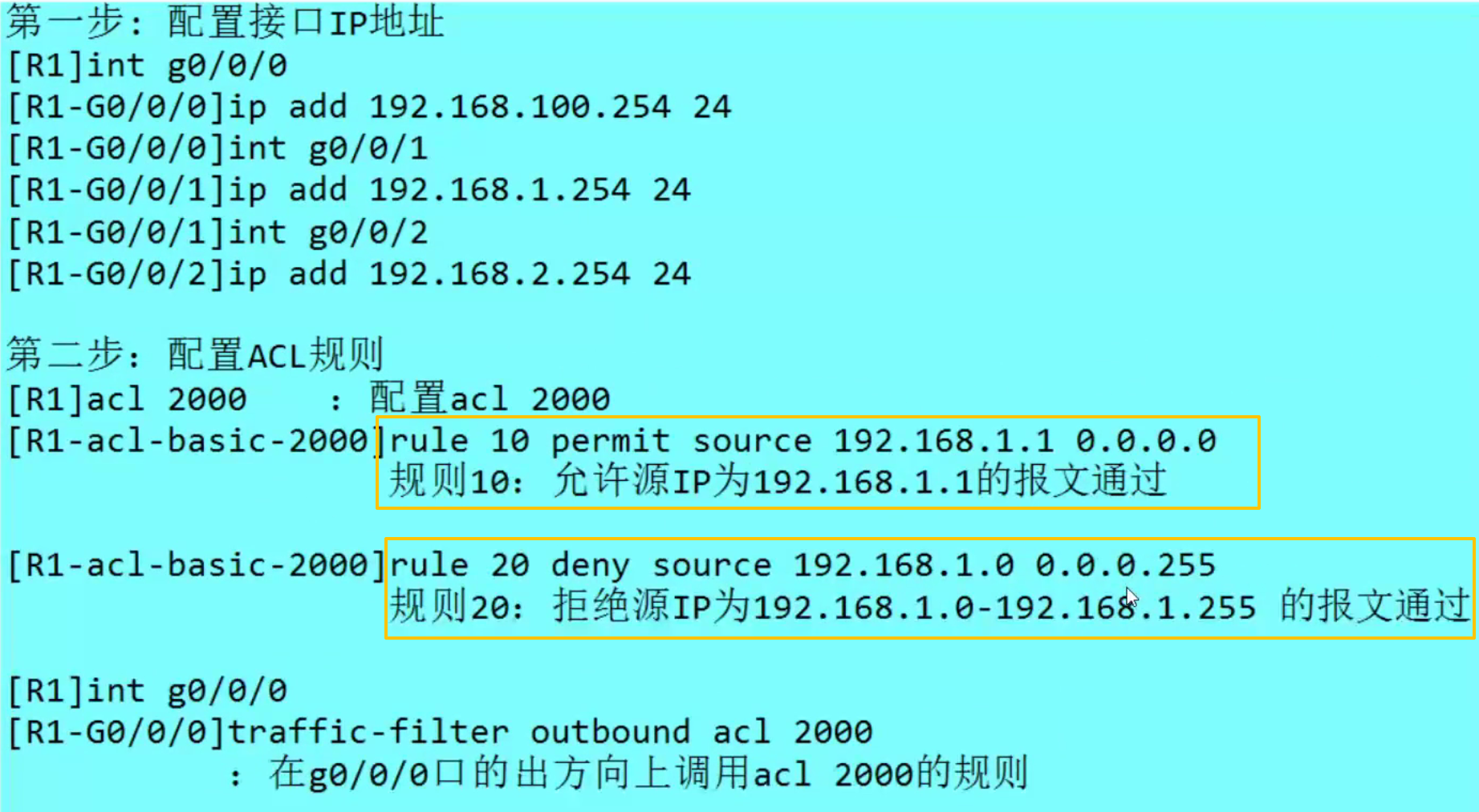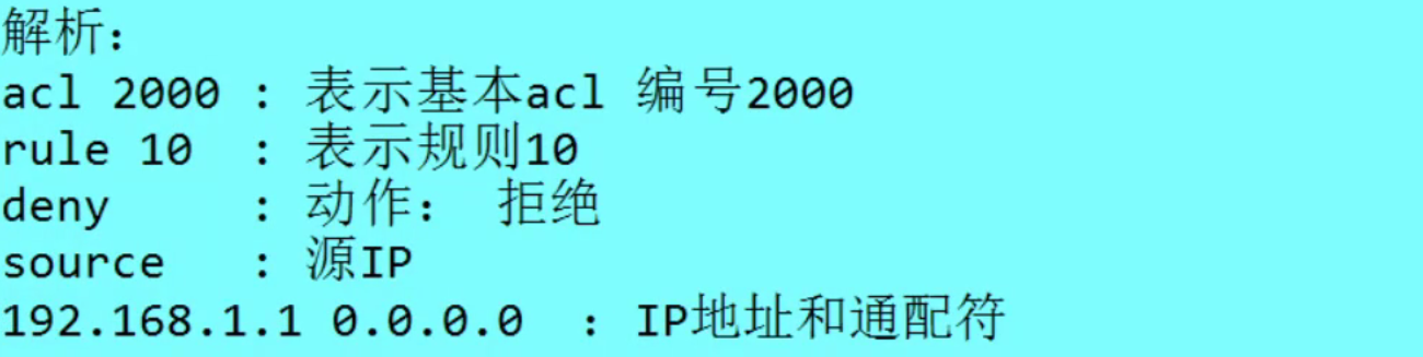 | 配置命令 | rule [permit/deny] source [IP地址] |