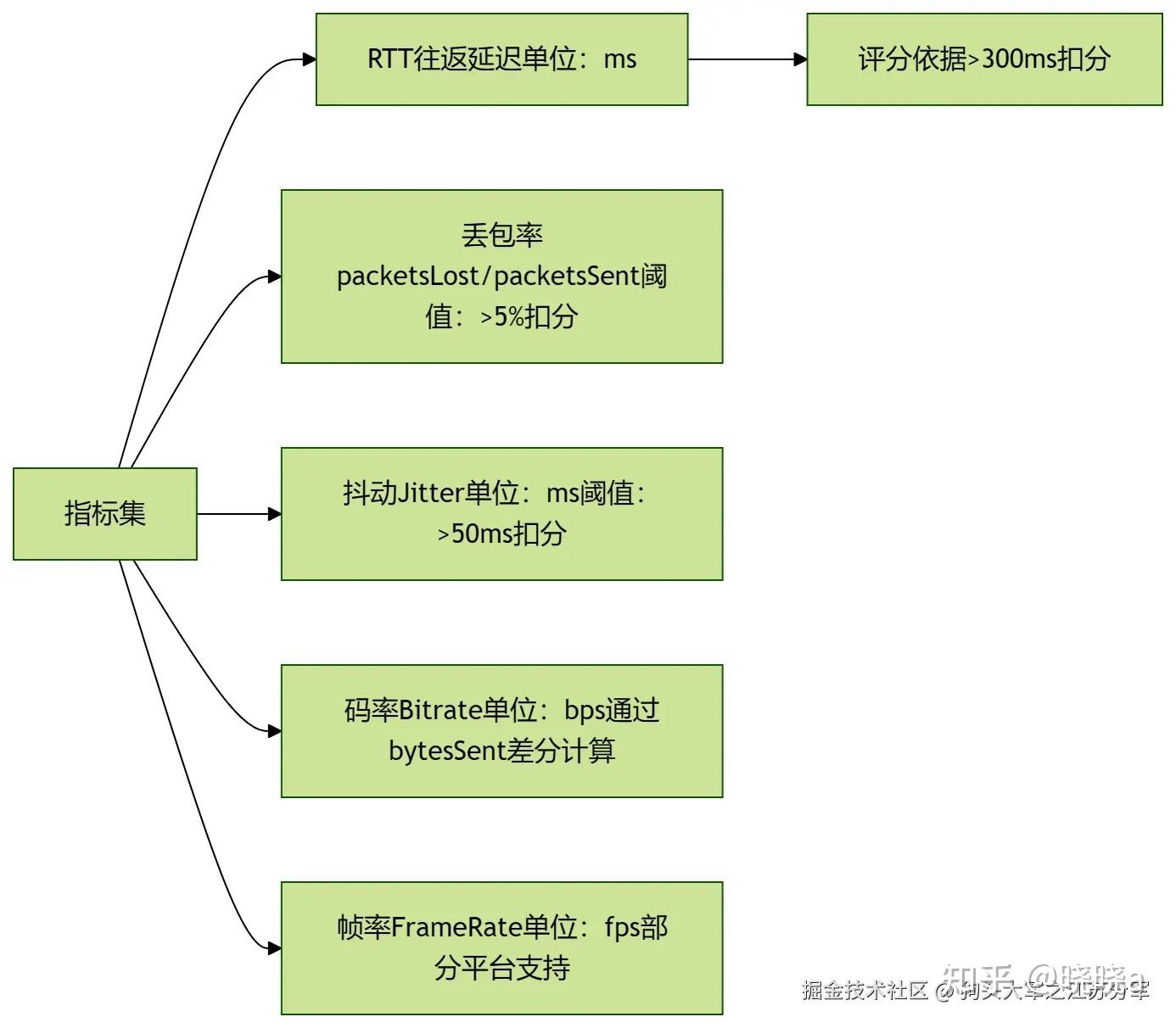 - 网络层:RTT、丢包率、抖动、发送/接收速率、重传次数
