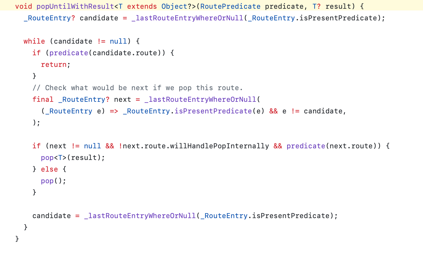 从 3.41 开始,Flutter 引入了 Navigator.popUntilWithResult,可以让开发者在一次调用中弹出多个屏幕并将值传回目的地路由: