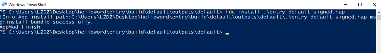 hdc install ./entry/default/entry-default-unsigned.hap
