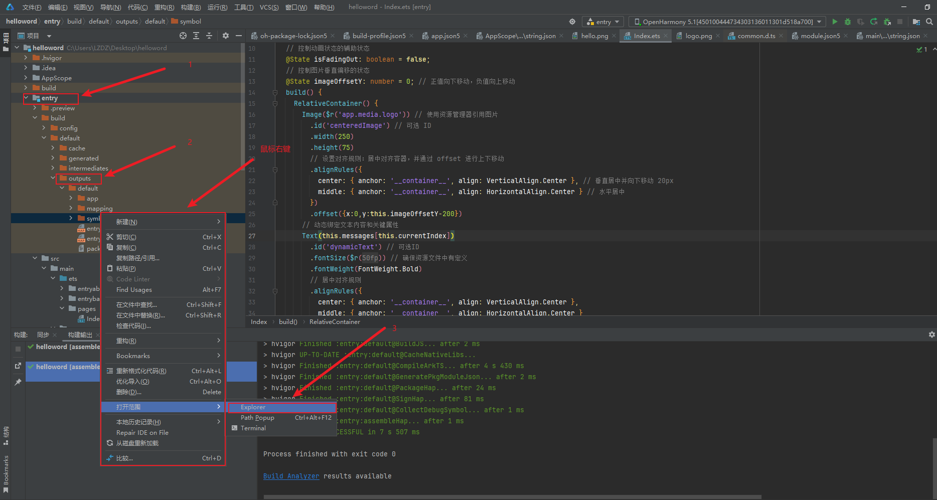 使用 DevEco Studio 打开项目中的 helloword 目录: