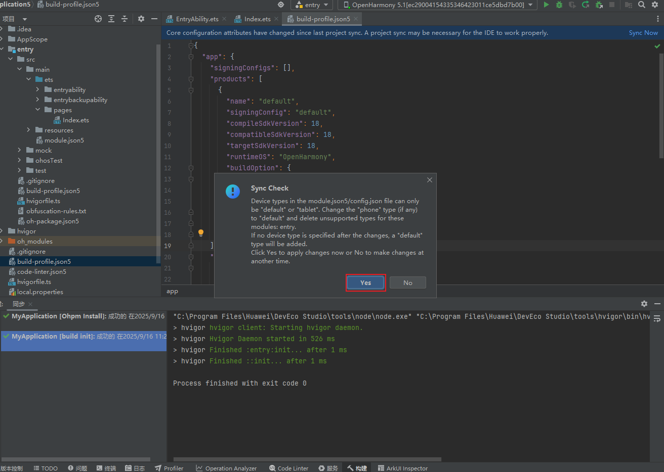 检查并更新 build-profile.json5 文件中的 SDK 版本信息: