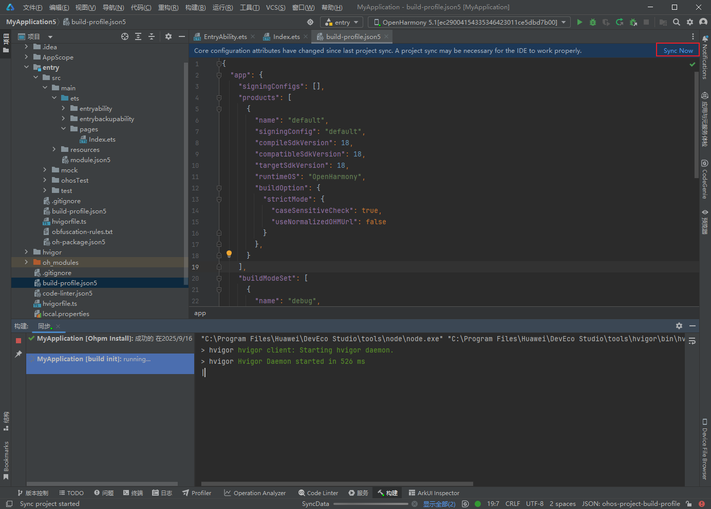 修改配置文件后,点击右上角的 "Sync Now" 提示来同步项目:
