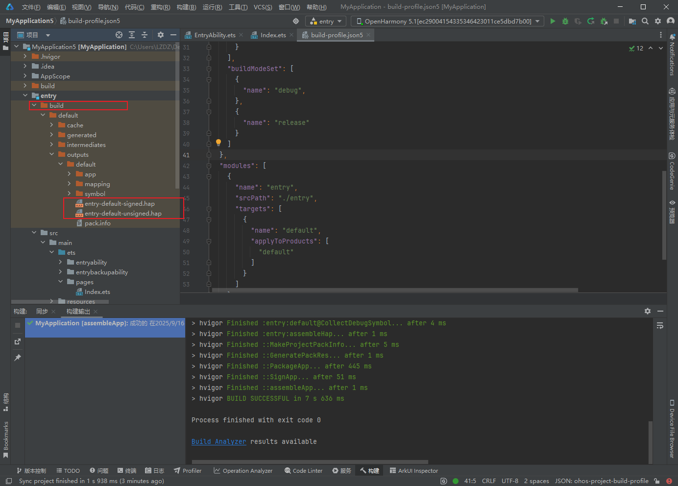 构建成功后,可以在 build/default/outputs/default 目录下找到生成的 HAP(HarmonyOS Ability Package)文件:
