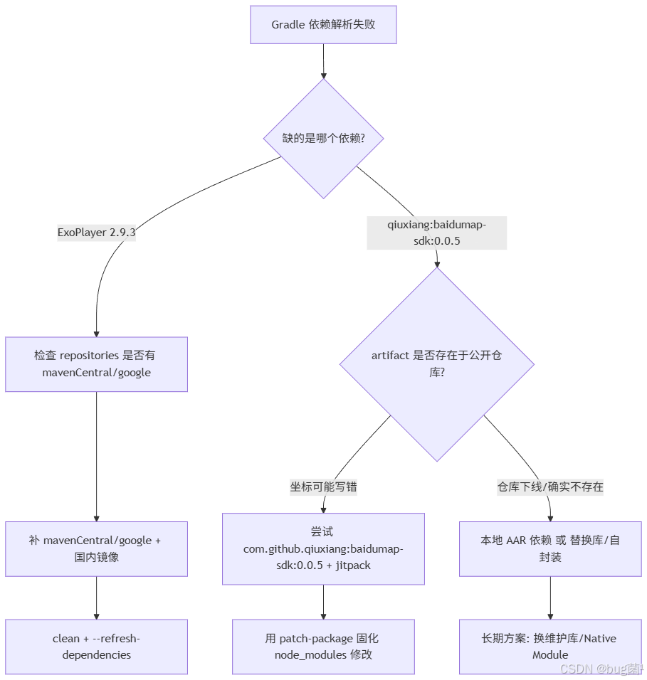 很多老 RN 插件依赖 jcenter、gradle 老版本、旧 support 库,现在 AGP/Gradle 升级后必炸。