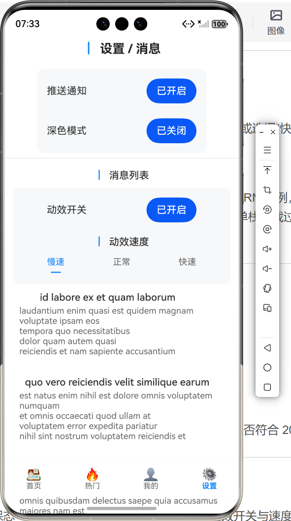 若引入 RN 动画库,避免在 ArkUI 与 RN 层同时做页面过渡;使用单栈承载过渡动画,另一栈仅展示内容,减少资源竞争。