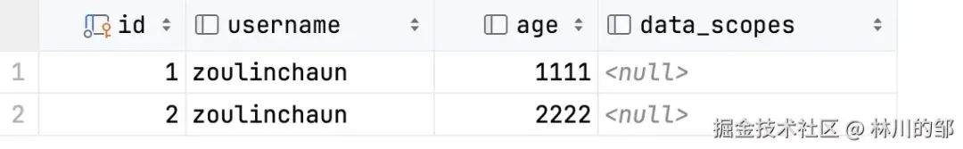 这是一张简单的用户表,接下来我们将为这张表编写以下数据权限