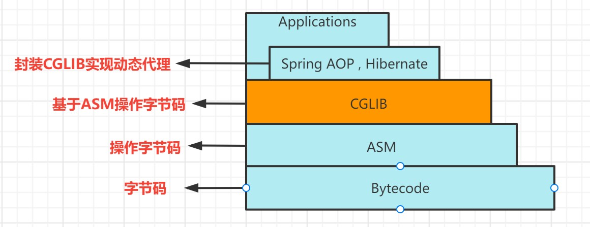 - cglib基于ASM字节码工具操作字节码(即动态生成代理,对方法进行增强)