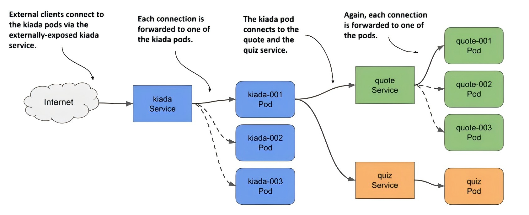 默认情况,访问请求会被Service均衡分发给后端Pod之一。