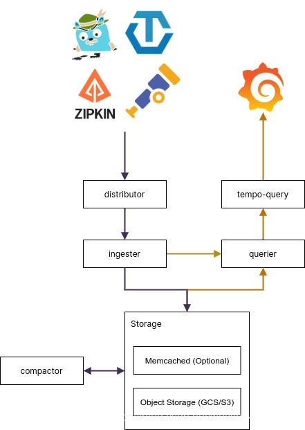 | Tempo | 分布式追踪存储 | 收集 trace 信息,存储于对象存储(如 MinIO/S3)中,便于分析慢请求、链路瓶颈。 |