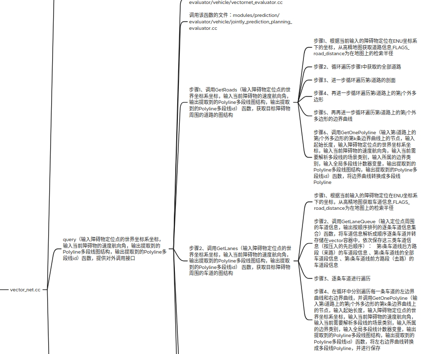 Apollo7.0_行为预测模块思维导图及该模块注释代码 , Apollo 7.0为Apollo最新版本,此次重点针对感知和预测算法,进行了模块升级。 引入Inter-TNT行为预测模式,通过障碍物与主车轨迹交互、高效编解码器,预测精度和性能都有显著提升。 相对于6.0版本 Apollo7.0版本的行为预测模块在6.0的基础上增加两款评估器:VECTORNET_EVALUATOR和JOINTLY_PREDICTION_PLANNING_EVALUATOR,以及增加场景交互图结构提取部分的代码(vector_net.cc这部分),这些行为预测的升级部分都会在我们的思维导图梳理清楚,同时包含整个行为预测模块的注释代码,相信您能很快入手。