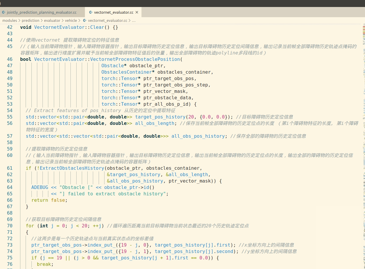 先看VECTORNETEVALUATOR这个新来的狠角色。老规矩直接扒代码,它的核心在vectornet.cc里那个GraphFeatureBuilder类。注意看这段: