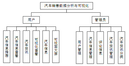 The front - end of this system uses the Vue.js framework to build an interactive interface. The back - end is developed with Python, combined with the Django framework for business logic, Hadoop for distributed storage, Spark for data cleaning and analysis, ECharts for visualization, and MySQL as the core database. The system's functions cover automobile information search, personalized recommendation, and comment interaction on the user end; dynamic sales display on dashboards and multi - dimensional statistical chart generation on the management end; and batch import/export of automobile data, crawler task management, and user permission control in the back - end. This system enhances the timeliness of automobile sales data processing and decision - making support through automated data collection and intelligent analysis.