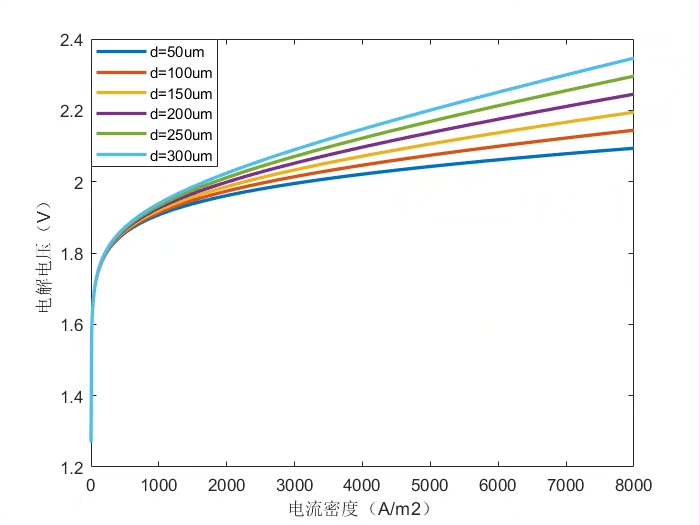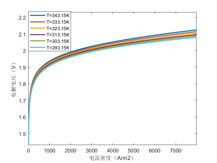 jlim(极限电流密度)决定翻车阈值。流道设计差的电解槽jlim可能只有1A/cm²,优化流场后能冲到3A/cm²以上。模型里把这个参数从1.5调到2.0,2A/cm²工况电压立降8%。