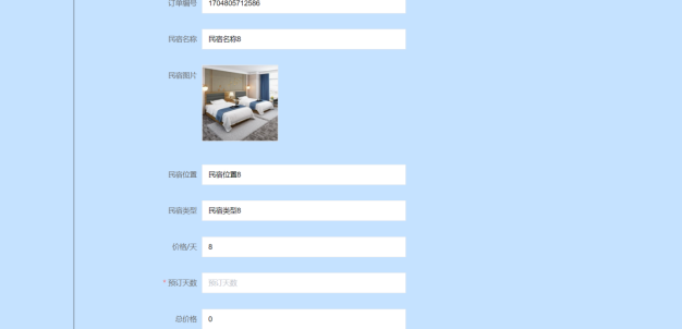 消费者通过注册、登录到系统前台后,在传统民宿详情页面,消费者可以查看民宿名称、民宿类型、价格/天、户型、民宿数量、民宿位置、商家账号、商家名称、商家电话、民宿图片、点击次数等传统民宿详情,并进行租赁、收藏等操作;点击租赁,租赁在视图层(view层)进行交互,这些信息动作被视图层捕获并作为请求发送给相应的控制器层(controller层)。控制器接收到这些请求后,调用服务层(service层)以执行相关的业务逻辑,例如验证输入数据的有效性和与数据库的交互。服务层处理完这些逻辑后,进一步与数据访问对象层(DAO层)交互,后者负责具体的数据操作如查询、新增、更新或删除信息,并将操作结果返回给控制器。最终,控制器根据这些结果更新视图层,以租赁功能可以看到最新的信息或相应的操作反馈。具体操作页面如图5-5、5-6所示。