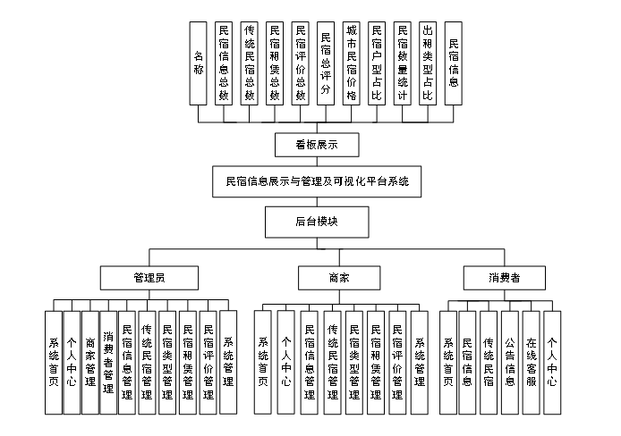 对本系统进行全面的系统功能的分析,可以得出民宿信息展示与管理及可视化平台系统的功能模块图,如图4-1所示。