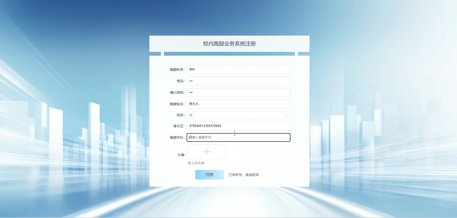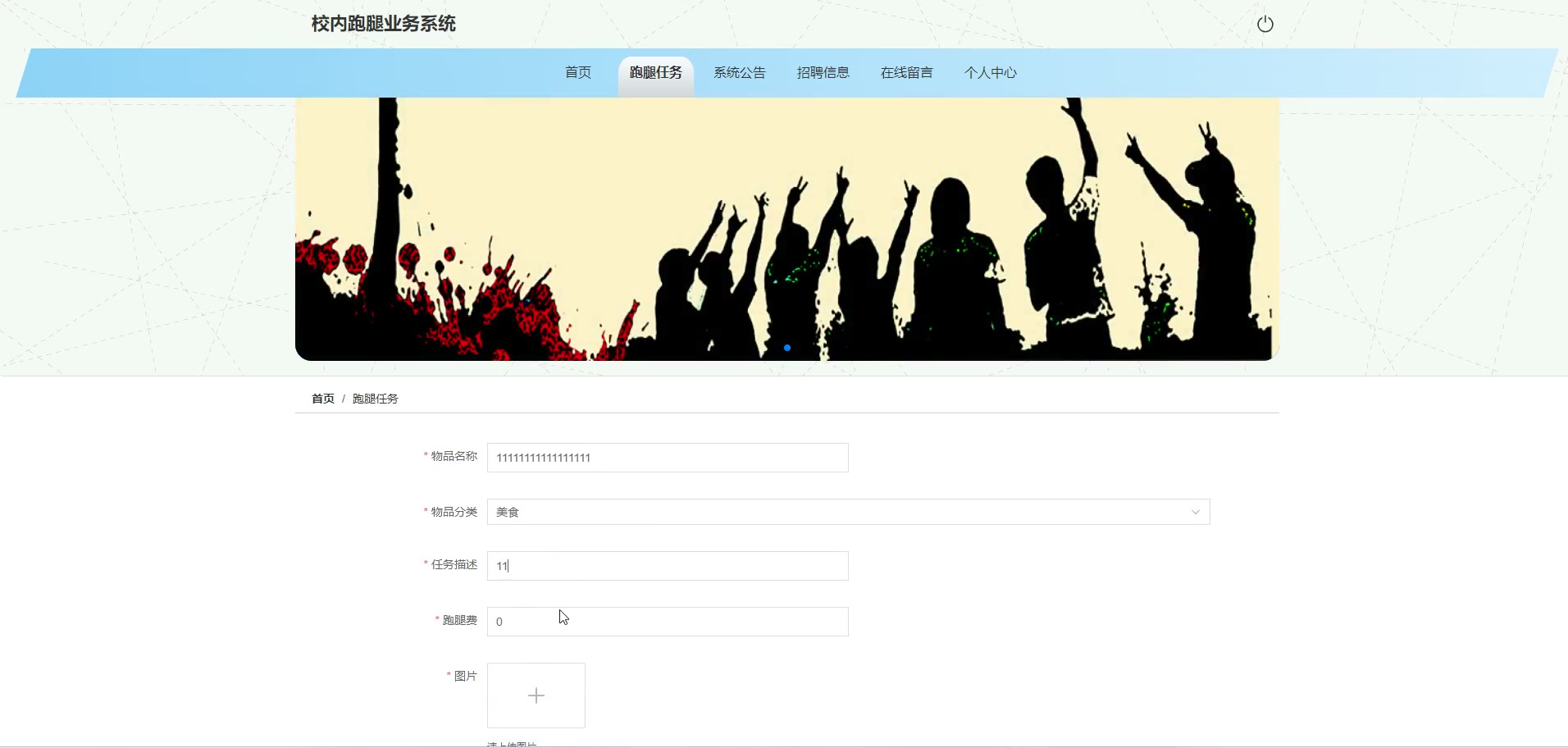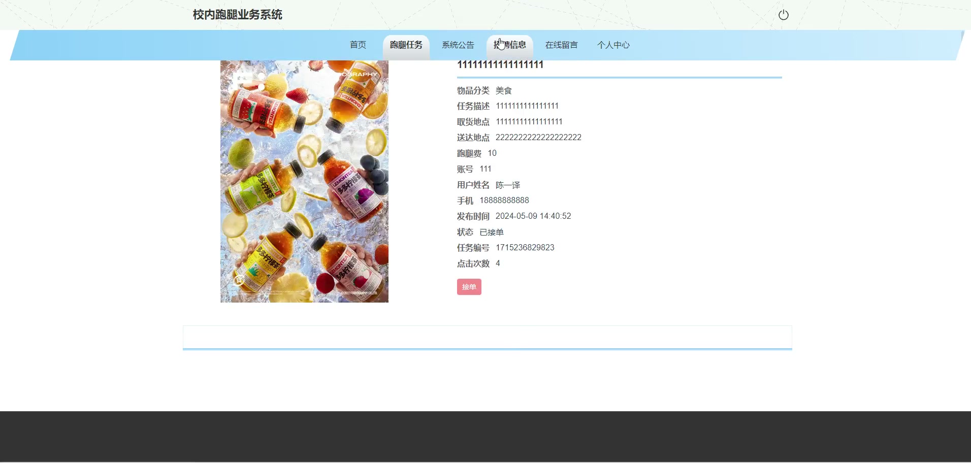 基于Java+SpringBoot+Vue校内跑腿业务系统(源码+LW+调试文档+讲解等)/校园跑腿服务/校内代取快递/学生跑腿平台/大学校园配送/校园内跑腿小程序/校内跑腿app/校园内代办事服务