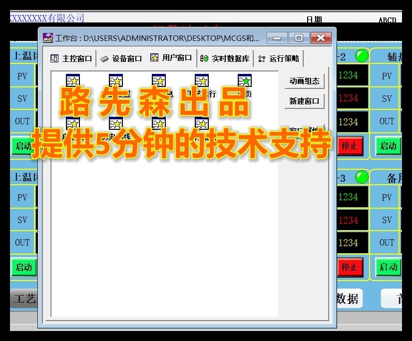 MCGS通过485通讯链接多块仪表的实例,可以在控温系统直接使用,包含内部参数,使用说明,视频教程,掉电保持,U盘导出,启动停止等等功能,最多可以通讯31个仪表,可做定值,可做程序,自由设定工艺 MCGS通过modbus通信读取仪表的实际值,设定值,输出功率等数据,远程通信启停。 包括触摸屏程序,制作数据,制作教程,plc程序相关说明书,联系后可以留下邮箱,邮箱发送。 谢谢 昆仑通泰mcgs触摸屏和仪表的rtu通讯示例硬件:mcgs触摸屏(没屏电脑也可实现),仪表。 通过modbus rtu功能,在触摸屏(或者电脑通过在线)控制仪表的启动和停止,。 两者直接通讯,不通过plc。 包括程序,接线,参数设置。 其他变频器支持modbus功能亦可实现。 附详细教程包括画面制作,参数设置和接线