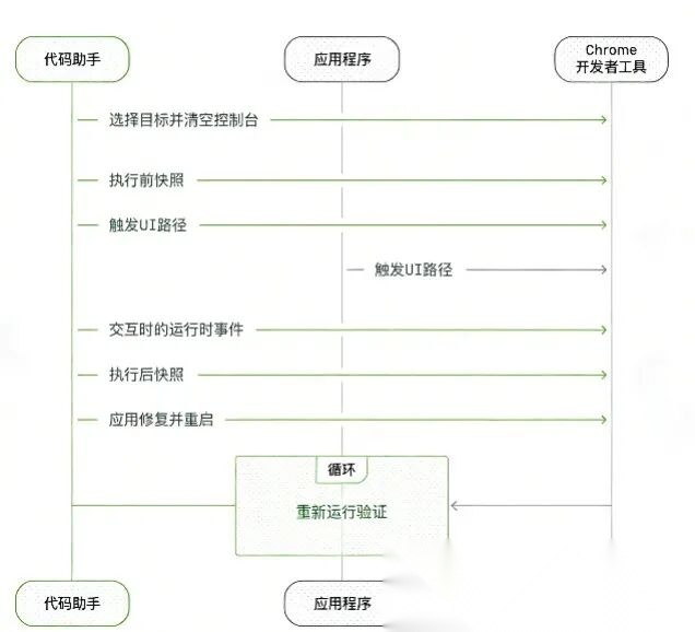 一方面让每个 git worktree 独立启动应用实例,集成 Chrome DevTools Protocol 并为 AI 设计了 DOM 快照、截图、导航的专属能力,AI 可按照固定流程自主验证 UI 行为:选择目标 + 清空控制台→操作前 DOM 快照→触发 UI 路径→记录运行时事件→操作后 DOM 快照→应用修复并重启→循环至无问题;